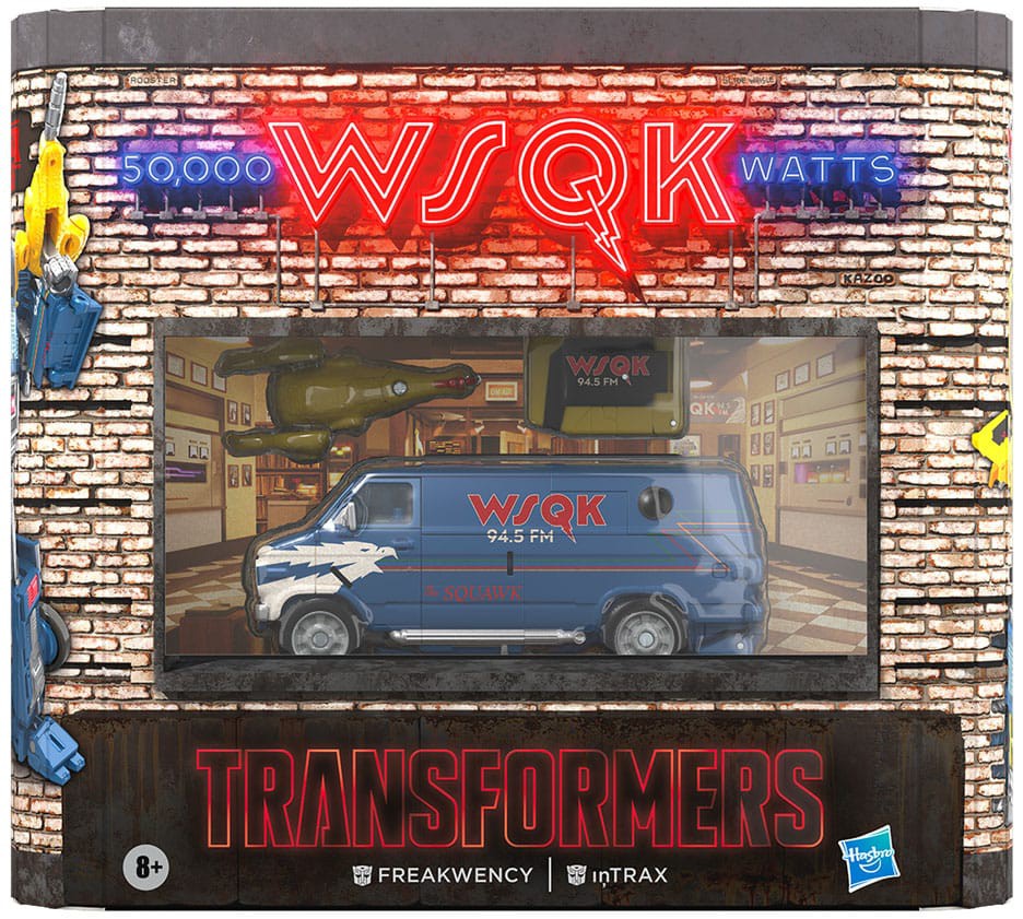 Freakwency, inspireret af den femte og sidste sæson af den ikoniske Netflix-serie, konverterer fra robottilstand (15 cm) til WSQK-van i 16 trin. 8-Trax-figuren skifter mellem 8-sporsbånd og høgtilstand i 8 trin og kan placeres i Freakwencys bryst i kassettetilstand.