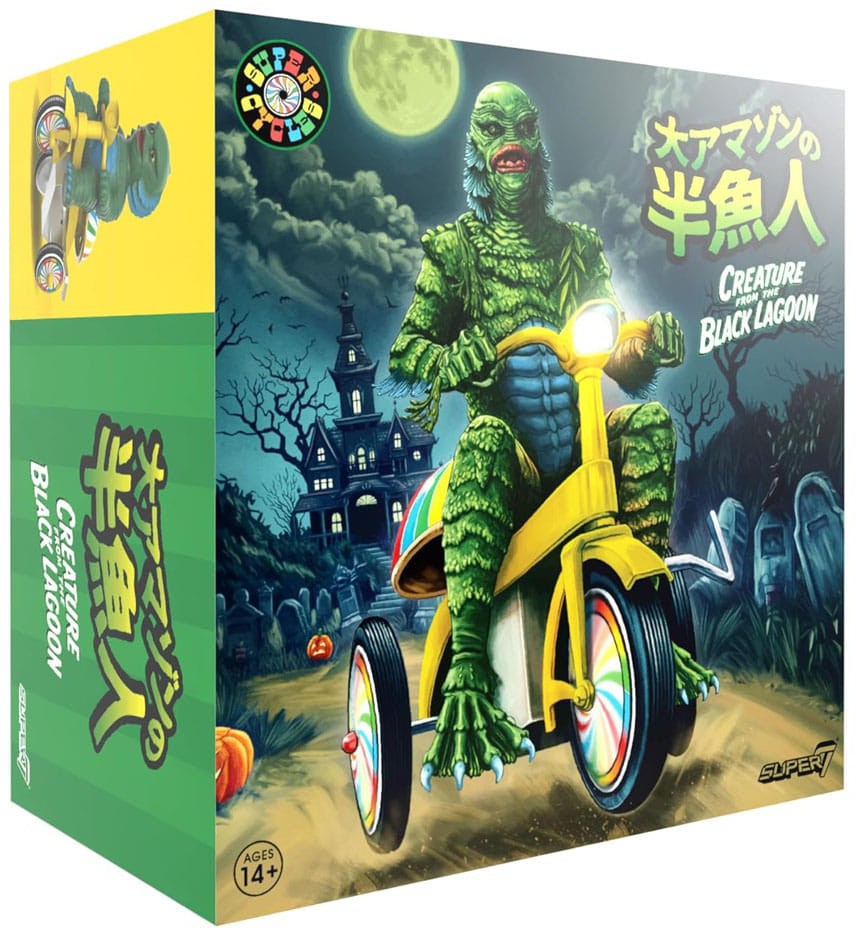 Stil venligst dit spørgsmål om "Super Cycles: Universal Monsters - Creature from the Black Lagoon (Dark Green with Yellow Trike)" nedenfor, så svarer vi hurtigst muligt!