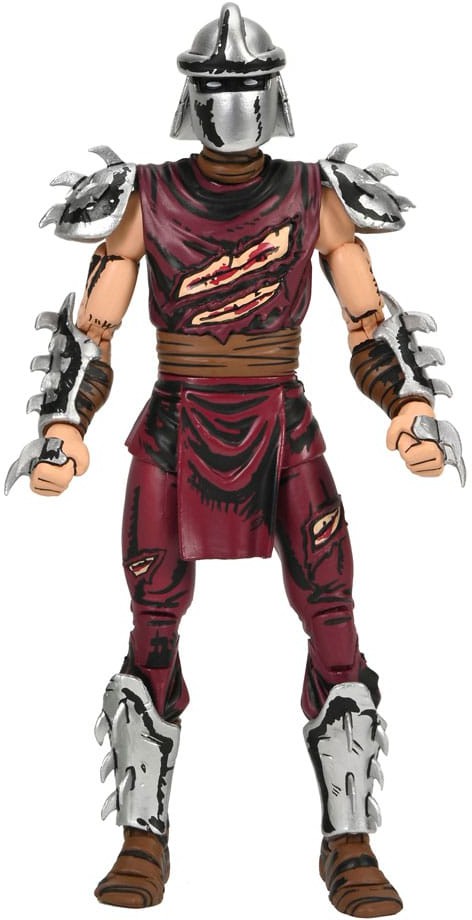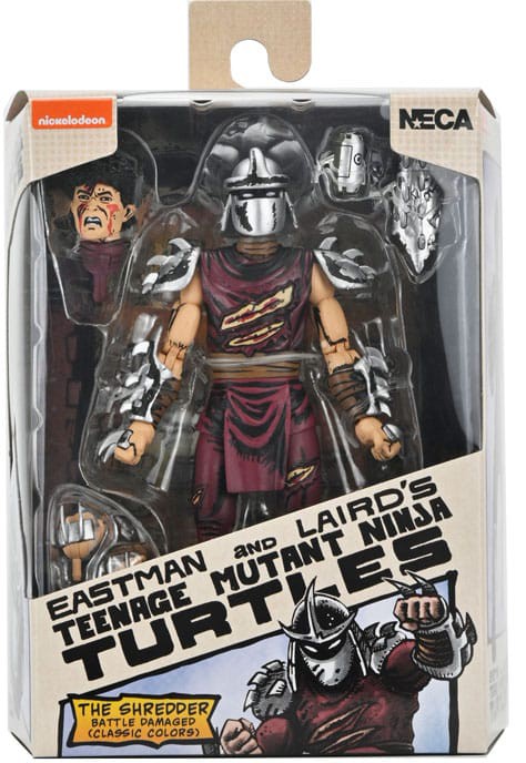 Oroku Saki har arvet rollen som The Shredder efter sin faldne bror Oroku Nagi. Den bitre rivalisering mellem Oroku- og Hamato-klanerne raser videre, og The Foot skyr ingen midler for at hævne deres tidligere mester. Denne kampskadede actionfigur har et klassisk farveskema og omfatter udskiftelige hænder, ekstra hoved, termitgranat og ødelagt handske.