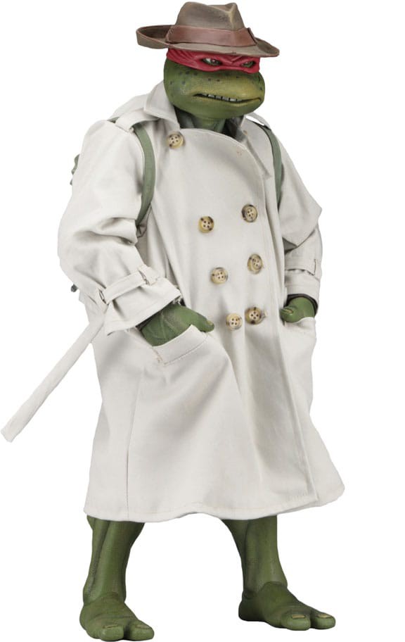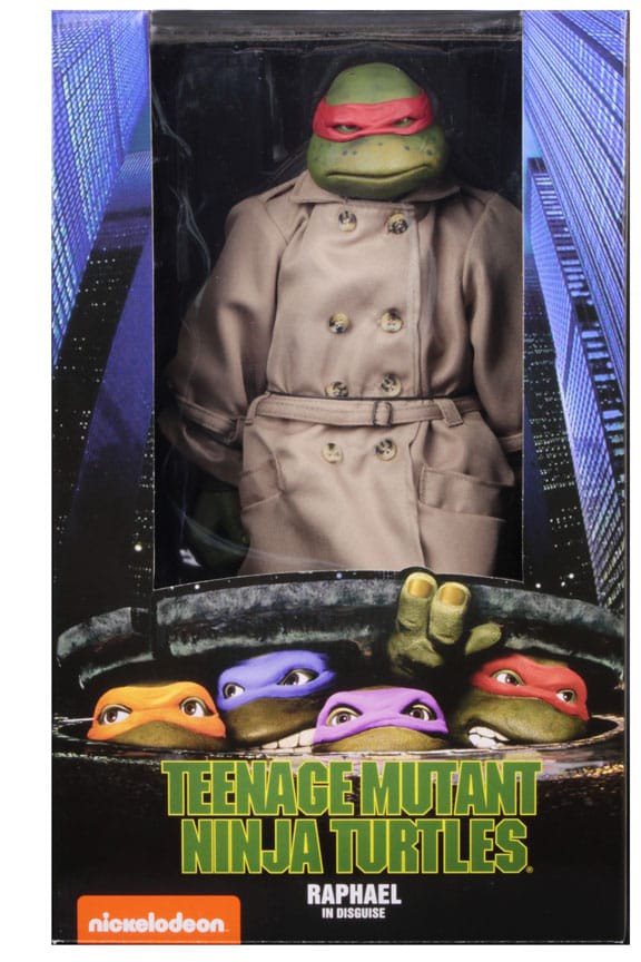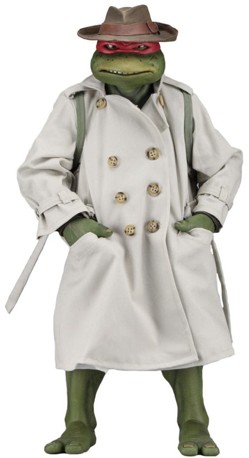 Denne NECA actionfigur i 1/4-skala viser Raphael i den forklædning, han bruger til at bevæge sig ubemærket gennem byen. Han bærer en trenchcoat i stof med skærmnøjagtigt slid samt en skulptureret hat og rygsæk – alt sammen aftageligt.