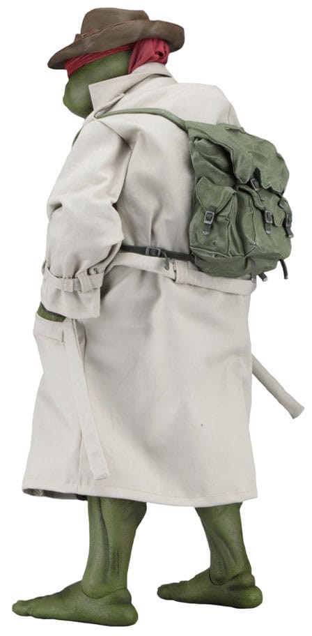 This NECA 1/4 scale action figure features Raphael in the disguise he uses to pass through the city unnoticed. He wears a fabric trench coat with screen-accurate wear and tear and a sculpted hat and backpack, all of which are removable.