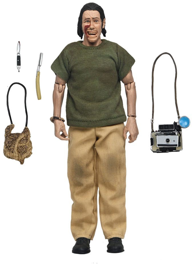 Celebrate the 50th anniversary of The Texas Chainsaw Massacre! The classic 1974 slasher film by Tobe Hooper changed horror cinema forever. Own a piece of its history with this Hitchhiker clothed action figure from NECA! This anniversary edition figure of the murderous cannibal, grave robber, and brother of Leatherface, is dressed in tailored fabric clothing similar to the retro toy lines that helped define the licensed action figure market in the 1970s. The fully poseable 8-inch figure includes camera, satchel, and straight razor accessories. Comes in window box packaging.