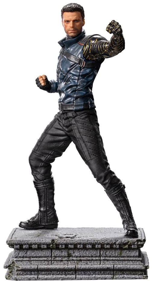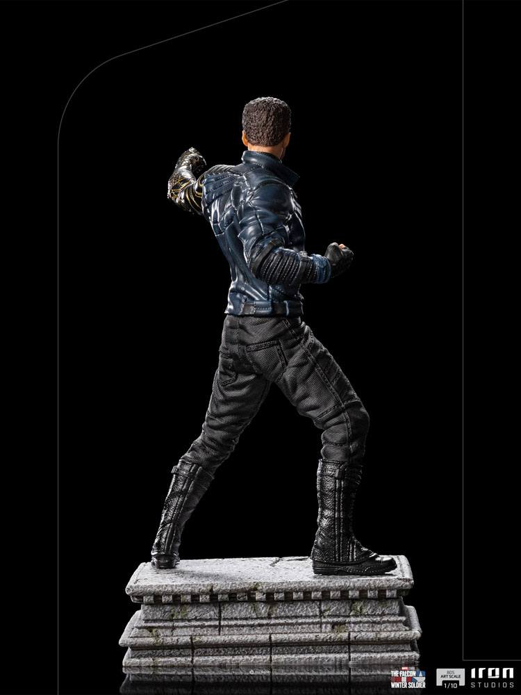 Punching the air with his cybernetic bionic left arm made of Vibranium, Captain America's first partner, donning a tactical jacket, pants, and boots, joins forces with avenger hero Sam Wilson, formerly known as The Falcon, in search of his redemption, facing the Flag Smashers super-soldiers, members of a terrorist and anti-nationalist group. As in the Disney+ streaming miniseries "The Falcon and the Winter Soldier", Iron Studios presents its "Bucky Barnes - The Falcon and the Winter Soldier - BDS Art Scale 1/10" statue with the veteran Winter Soldier ready for combat, on the base of a concrete floor that refers to the top of a building.