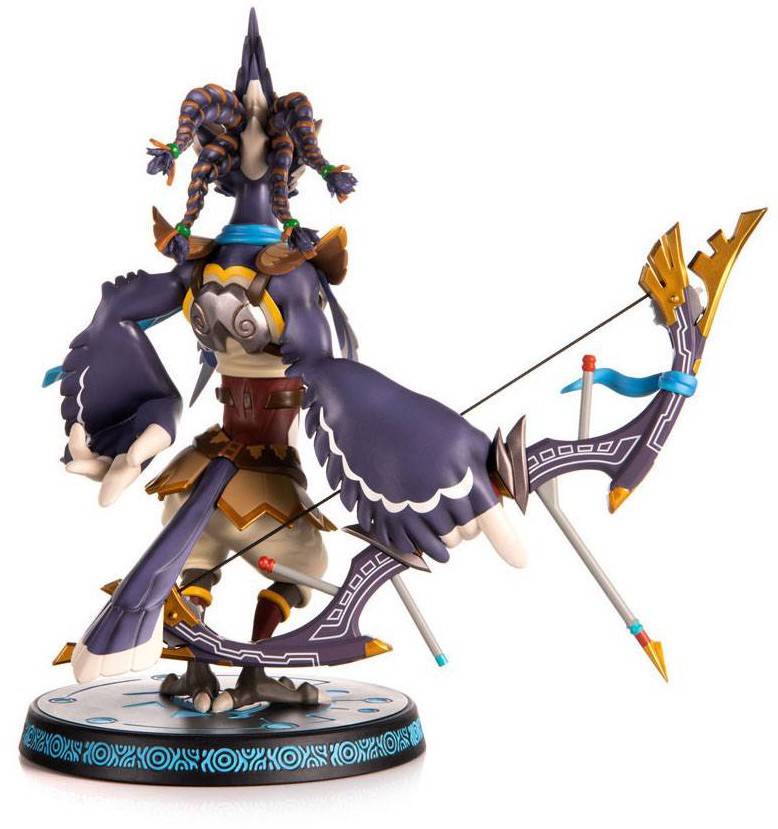 The highly detailed Revali PVC statue is inspired by his official artwork from The Legend of Zelda: Breath of the Wild. Revali is in this stoic pose wielding the Great Eagle Bow, which has a slightly elastic bowstring. As one of the four Champions of Hyrule, he dons the blue cloth bestowed upon them by Princess Zelda as a symbol that they are, indeed, Champions of Hyrule. And given the direction of where the cloth is blowing, it even adds a certain dynamism to the piece.