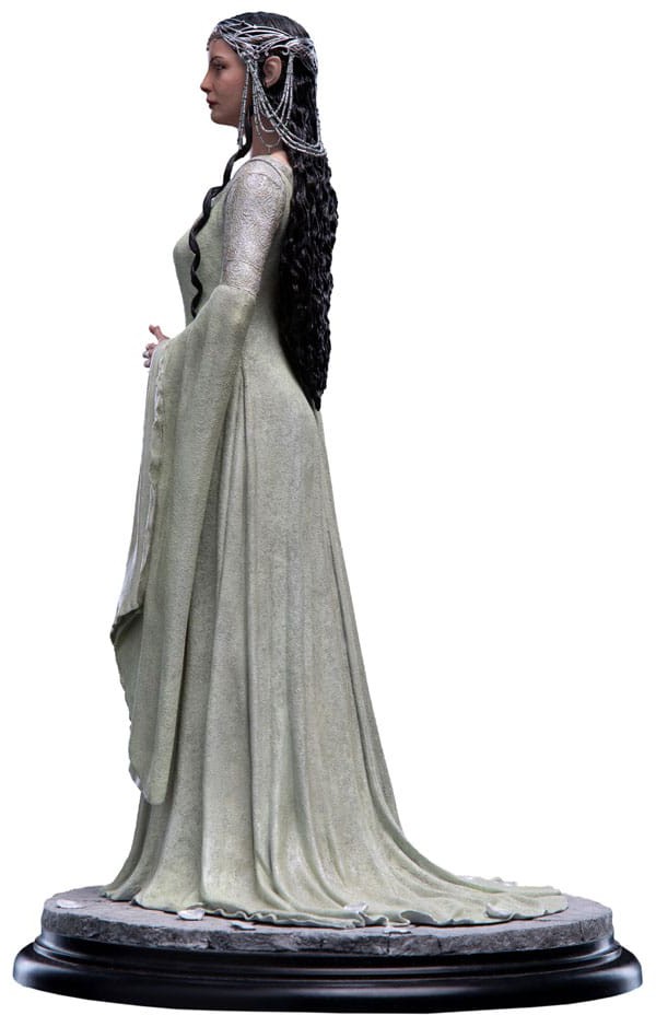 The eternal elf stayed behind, choosing instead to live the life of a mortal with her chosen love. After ages of trials, and the immeasurable weight of sorrow, Arwen, the illustrious elven maiden of Rivendell, now stands at the side of her beloved Aragorn as he reclaims the throne that has long been in abeyance.