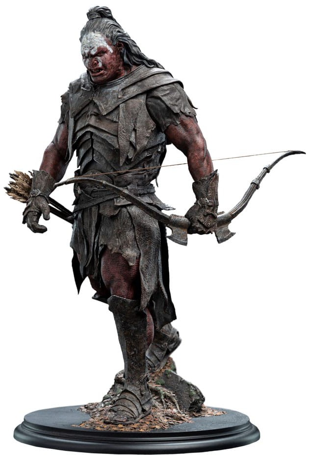 Find the Halflings!' On the slopes of Amon Hen, the Uruk-hai fell upon the Fellowship, chasing and scattering them among the woods. Defending Merry and Pippin, Boromir of Gondor stood between the hobbits and innumerable foes, cutting down Uruk after Uruk even as Lurtz struck him with arrows from afar. Pierced by many shafts, the warrior at last stumbled to his knees, spent, and resigned to his death before the triumphant Uruk-hai. Savouring the sweet taste of his victory, a leer curled across the toothy mouth of Isengard's captain, and he raised his bow to send the final dart...