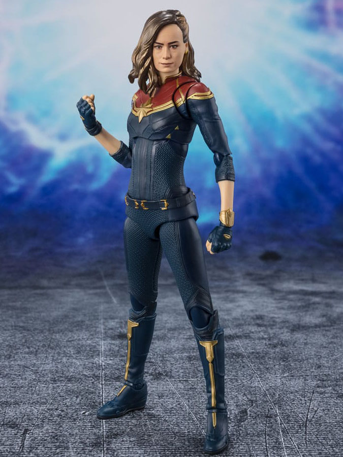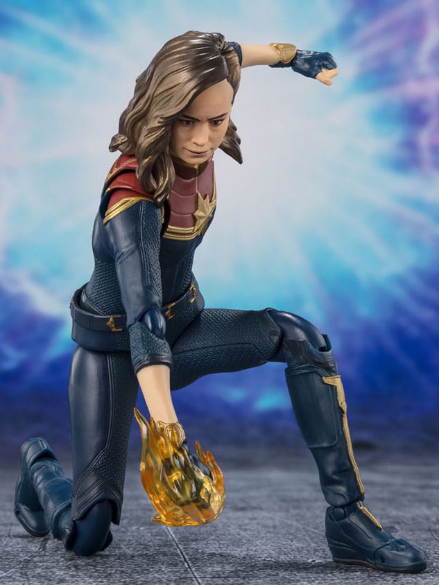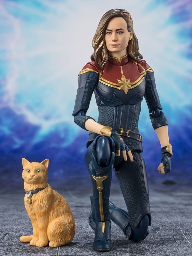 Captain Marvel, as seen in "The Marvels," joins S.H.Figuarts! Includes two types of Photon Blast effects, an optional head to re-create her invincible binary form, and of course, her cat Goose.