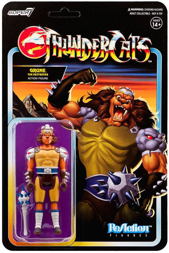Once a ThunderCats noble, greed and lust for power turned Grune the Destroyer against his fellow ThunderCats on Thundera. This imposing 3.75" articulated ThunderCats ReAction figure of Grune the Destroyer comes complete with mace accessory. A sworn enemy of Lion-O and his allies, this Grune the Destroyer ReAction figure will be a fearsome addition to your ThunderCats collection.