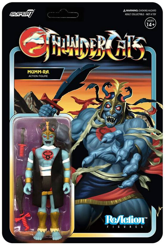 ThunderCats are loose! Super7 is proud to welcome ThunderCats to the 3.75" ReAction Figures World! Mumm-Ra the Ever-Living comes armed with sword and dagger.