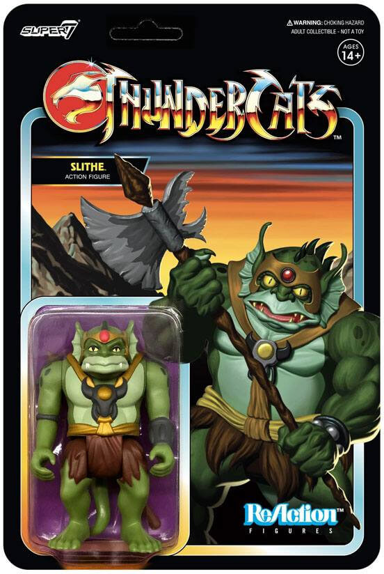 Thundercats are loose! Super7 is proud to welcome ThunderCats to the 3.75" ReAction Figures World! Slithe, the Evil Mutant Leader, comes armed his axe.