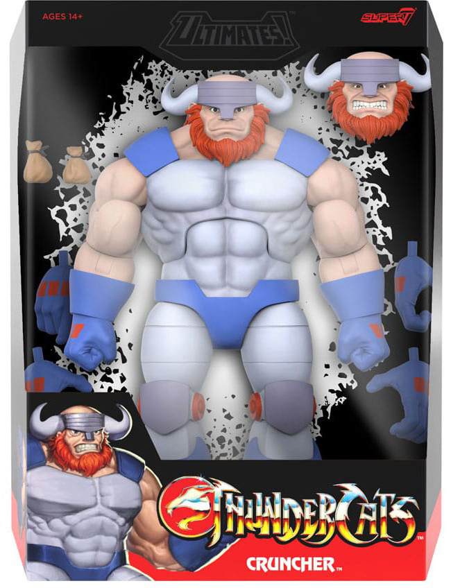The Berserker, Cruncher, uses his awesome strength to help his fellow pirates pursue their cruel and greedy schemes on the high seas of Third Earth! Inspired by the classic animated television series, this 7" scale, highly articulated ThunderCats ULTIMATES! figure of Cruncher comes packed in collector-friendly window box packaging, with a set of interchangeable head and multiple interchangeable hands, and includes two pouch accessories. Continue the epic battle to save-or destroy-Third Earth by adding the new Cruncher ULTIMATES! figure to your collection!