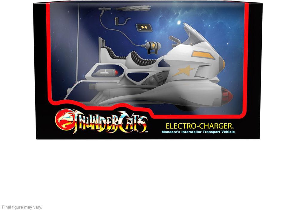 The Interplanetary Control Force's star officer, Evil Chaser First Class Mandora, doesn't chase galactic criminals in just any beat-up law enforcement cruiser, she uses the amazing Electro-Charger to bring evil-doers to justice! This highly detailed ThunderCats ULTIMATES! Electro-Charger vehicle can hold multiple 7" scale ULTIMATES! figures while they campaign for justice and comes with an assortment of helpful crime-fighting accessories. It also features retractable rolling, grippy wheels and kickstand as well as a clear flight stand so that it can be displayed as a planetary wheeled vehicle or "in-flight" as an intergalactic flying machine. Keep the bad guys on the run by adding the limited edition, made-to-order Electro-Charger to your armada of ThunderCats ULTIMATES! vehicles.