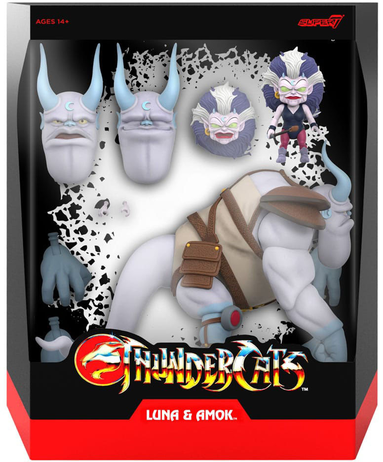 The dedicated bodyguard and servant of Luna, Amok is fiercely loyal to her and will protect her against any threat! These 7" scale, highly articulated ThunderCats ULTIMATES! figures of Luna and Amok are inspired by the classic animated series - Amok can even transport Luna on his back, just like in the show! Featuring intricate sculpt and premium paint detailing, this figure also comes with multiple interchangeable heads and hands for both characters, and a riding crop accessory. Add these made-to-order Luna and Amok ThunderCats ULTIMATES! figures to your collection today!