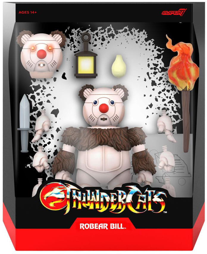 Ro-Bear Bill, lederen af Ro-Bear Berbils, er en sand ven af ThunderCats og hjælper dem med at vænne sig til deres nye hjem på den tredje jord! Denne 18 cm store, meget bevægelige ThunderCats ULTIMATES! figur af Ro-Bear Bill er inspireret af den klassiske animationsserie og har indviklede skulpturer og førsteklasses farvedetaljer og leveres med et udskifteligt hoved og flere hænder samt et udvalg af tilbehør, herunder en tegning af Cats' Lair, en lygte, en fakkel og meget mere! Tilføj denne specialfremstillede Ro-Bear Bill ThunderCats ULTIMATES! figur til din samling i dag!