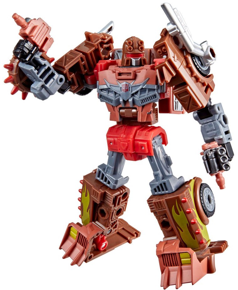 The 5.5-inch (14 cm) Deluxe Class figure converts from robot action figure to off-road vehicle mode in 17 steps and can be split apart into armor pieces for other figures.