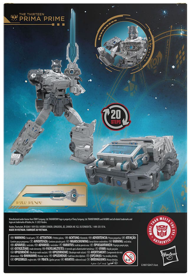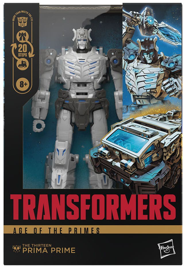 Unite your favorite characters from across the world of Transformers robots into your collection with the Transformers Age of the Primes Voyager Class The Thirteen Prima Prime action figure! This 7-inch The Thirteen Prima Prime action figure converts between robot and Cybertronian truck modes in 20 steps. Includes Star Saber Sword and Matrix of Leadership accessories. The Thirteen Prima Prime figure is inspired by the character from the Transformers universe and features articulated head, arms, and legs for awesome action poses. Transformers: Age of the Primes opens up the world of the Primes, the very first bots in Transformers mythology, a pantheon of Thirteen beings, each with a unique ability and personality. Every battle, every bot, and every power in the Transformers universe can be traced back to one of The Thirteen. Collect and combine different characters to create your ideal Age of the Primes lineup.