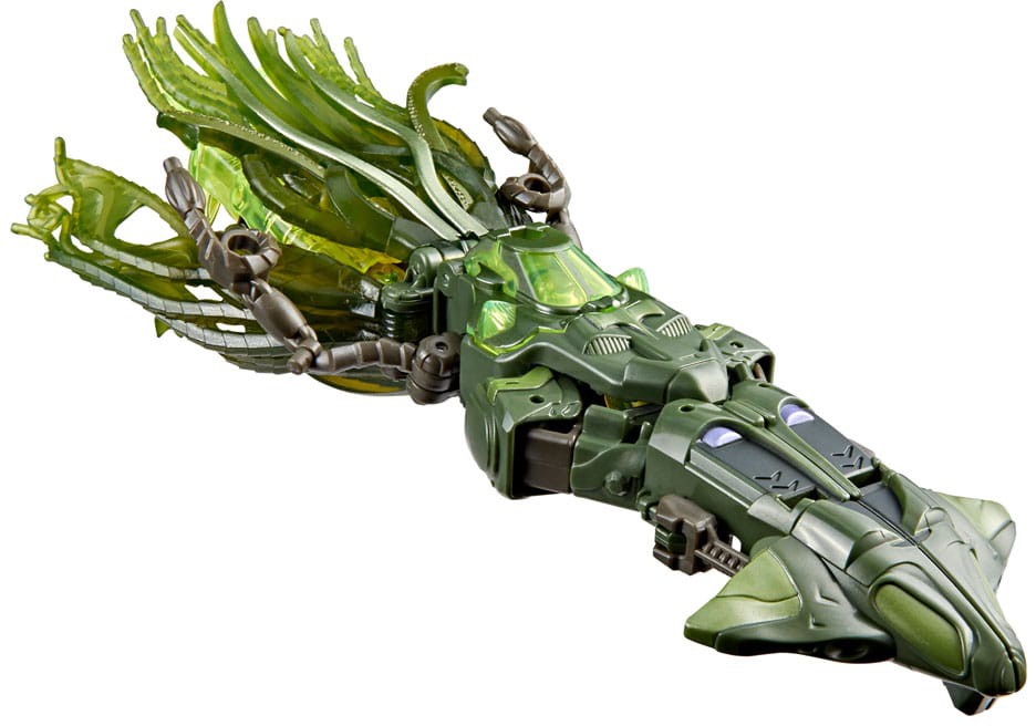 The 5.5-inch (14 cm) Deluxe Class figure converts from robot action figure to squid-spaceship mode in 15 steps.
