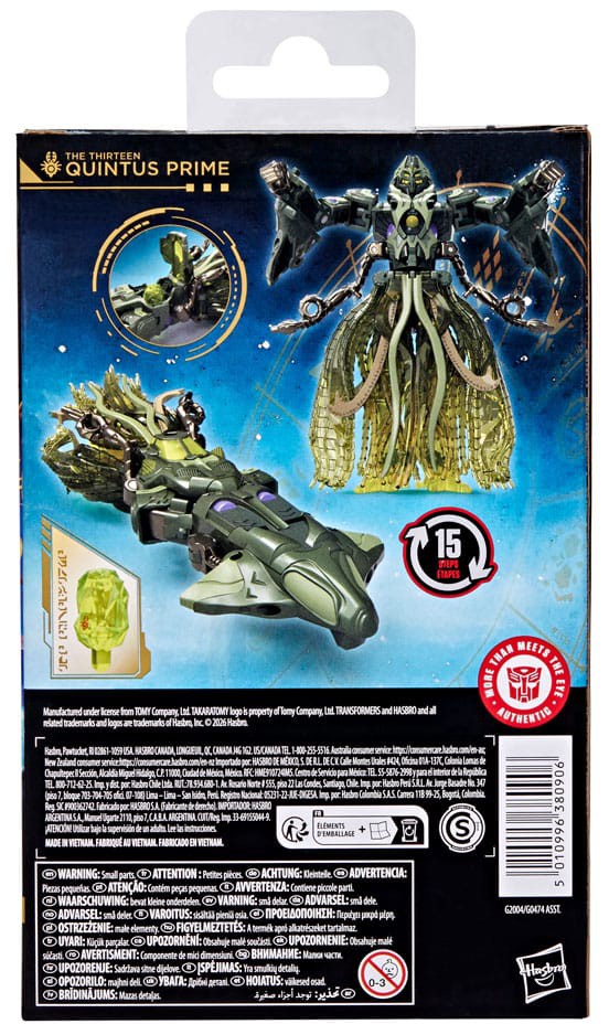 Oplev Transformers-robotternes episke univers med Transformers Age of the Primes The Thirteen Quintus Prime! Denne Deluxe Class-figur er ca. 14 cm høj og kan forvandles fra robot til et unikt blæksprutte-rumskib i 15 trin.