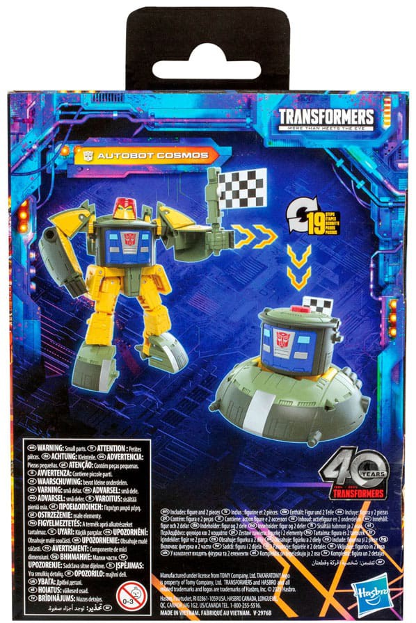 Unite your favorite characters from across the world of Transformers robots into your collection with the Transformers Legacy Deluxe Class Autobot Cosmos action figure! This 5.5-inch Autobot Cosmos action figure converts between robot and spaceship modes in 19 steps. The included blaster and flag accessories attach to the figure in robot and spaceship modes. The Autobot Cosmos figure is inspired by the character from Transformers universe and features articulated head, arms, and legs for awesome action poses. Transformers: Legacy opens the portal to a whole new universe of -- More Than Meets the Eye -- bringing together every Transformers generation like you've never seen before. Collect and combine different characters to create your ideal Legacy lineup.
