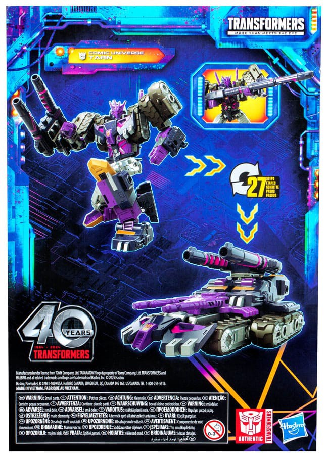 Unite your favorite characters from across the world of Transformers robots into your collection with the Transformers Legacy United Voyager Class Comic Universe Tarn action figure! This 7-inch Comic Universe Tarn action figure converts between robot and tank modes in 27 steps. Gear up for battle with the included blaster accessory that attaches to the figure in both modes. The Comic Universe Tarn figure is inspired by the character from the Transformers IDW comic book universe and features articulated head, arms, and legs for awesome action poses. Celebrate the last 40 years of Transformers history with Transformers Legacy action figures. Transformers Legacy opens the portal to a whole new universe of -- More Than Meets the Eye -- bringing together every Transformers generation like you've never seen before. Collect and combine different characters to create your ideal Legacy lineup.
