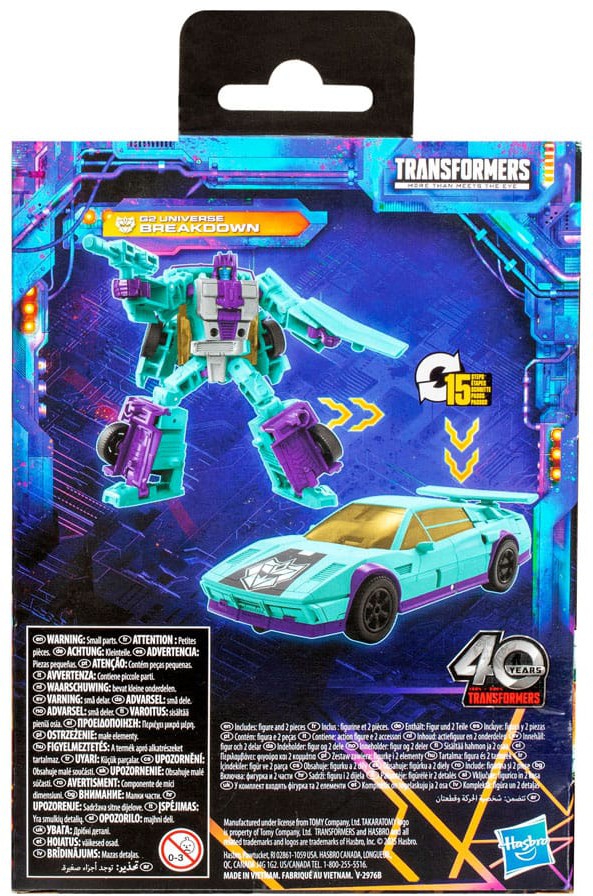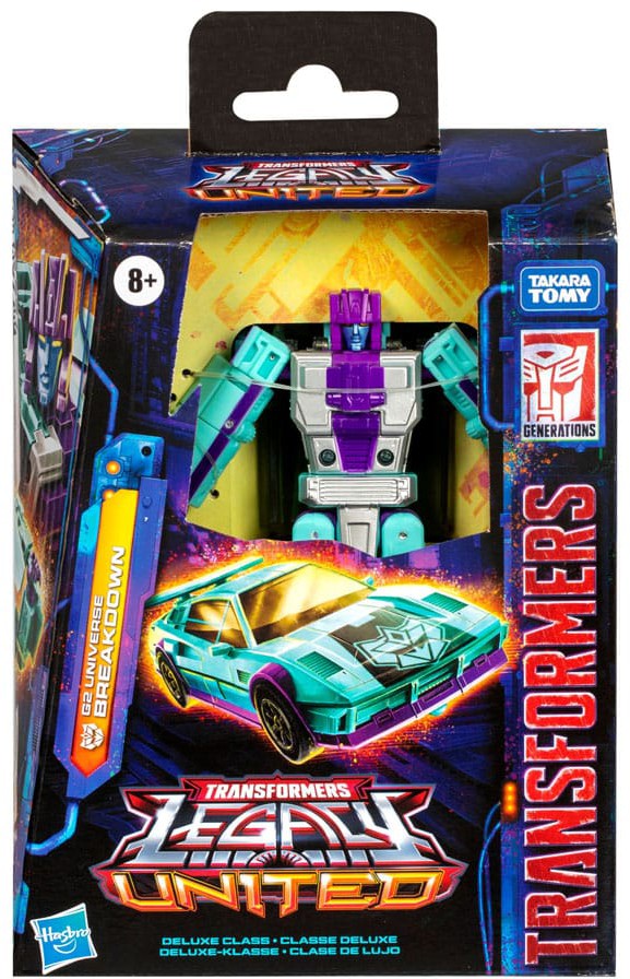 Unite your favorite characters from across the world of Transformers robots into your collection with the Transformers: Legacy Deluxe Class G2 Universe Breakdown action figure! This 5.5-inch G2 Universe Breakdown action figure converts between robot and sports car modes in 15 steps. The included blaster and spoiler accessories attach to the figure in robot and sports car modes. The G2 Universe Breakdown figure is inspired by the character from the Transformers G2 Universe and features articulated head, arms, and legs for awesome action poses. Transformers: Legacy opens the portal to a whole new universe of -- More Than Meets the Eye -- bringing together every Transformers generation like you've never seen before. Collect and combine different characters to create your ideal Legacy lineup.