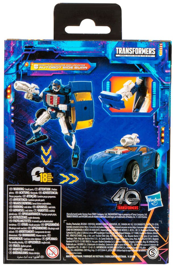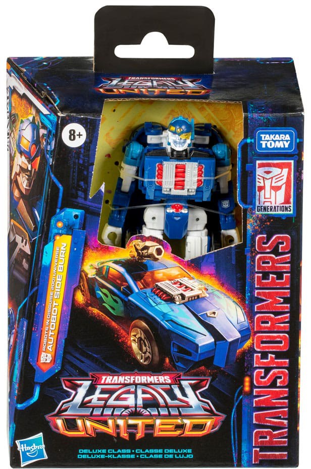 Unite your favorite characters from across the world of Transformers robots into your collection with the Transformers Legacy United Deluxe Class Robots in Disguise 2001 Universe Autobot Side Burn action figure! This 5.5-inch Robots in Disguise 2001 Universe Autobot Side Burn action figure converts between robot and sports car modes in 18 steps. Gear up for battle with the included blaster accessory. The Robots in Disguise 2001 Autobot Side Burn figure is inspired by the character from the Transformers: Robots in Disguise animated series and features articulated head, arms, and legs for awesome action poses. Celebrate the last 40 years of Transformers history with Transformers Legacy action figures. Transformers Legacy opens the portal to a whole new universe of -- More Than Meets the Eye -- bringing together every Transformers generation like you've never seen before. Collect and combine different characters to create your ideal Legacy lineup.
