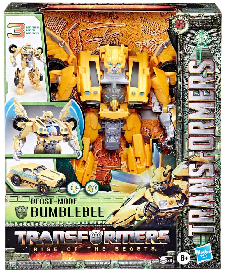 BEAST-MODE BUMBLEBEE Legetøj: Denne 25 cm høje Beast-Mode Bumblebee-robot har en ny beast alt-tilstand! Actionfiguren kan forvandle sig mellem 3 tilstande: robot, køretøj og bæst!