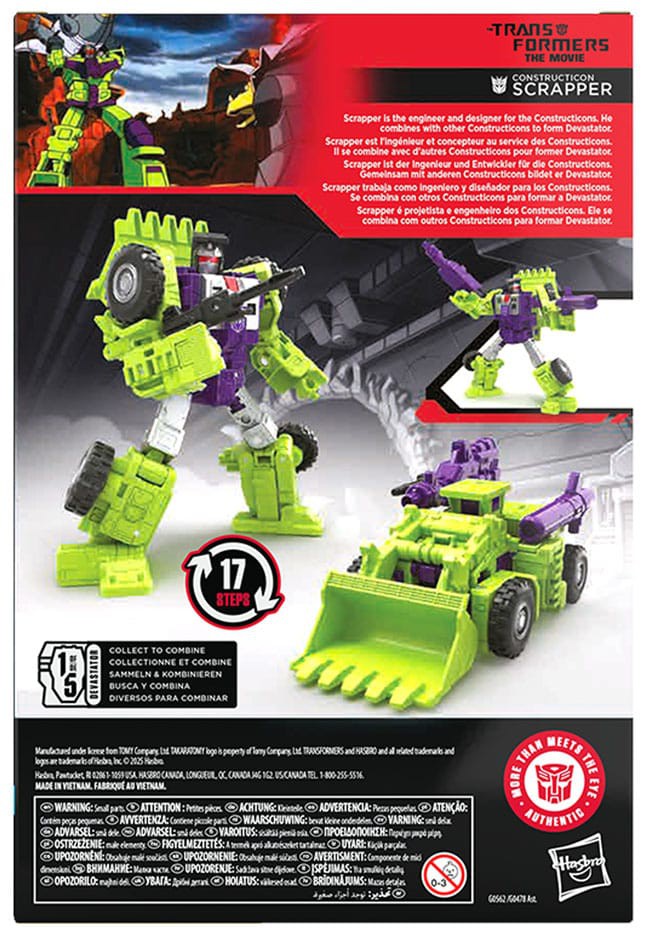 Bring the epic action of the Transformers movies from the big screen into your collection with the Transformers Studio Series Voyager Class Constructicon Scrapper action figure, inspired by Transformers: The Movie! Combine the 6.5-inch (16.5 cm) Constructicon Scrapper figure with other Transformers Constructicon action figures to create the Devastator action figure!