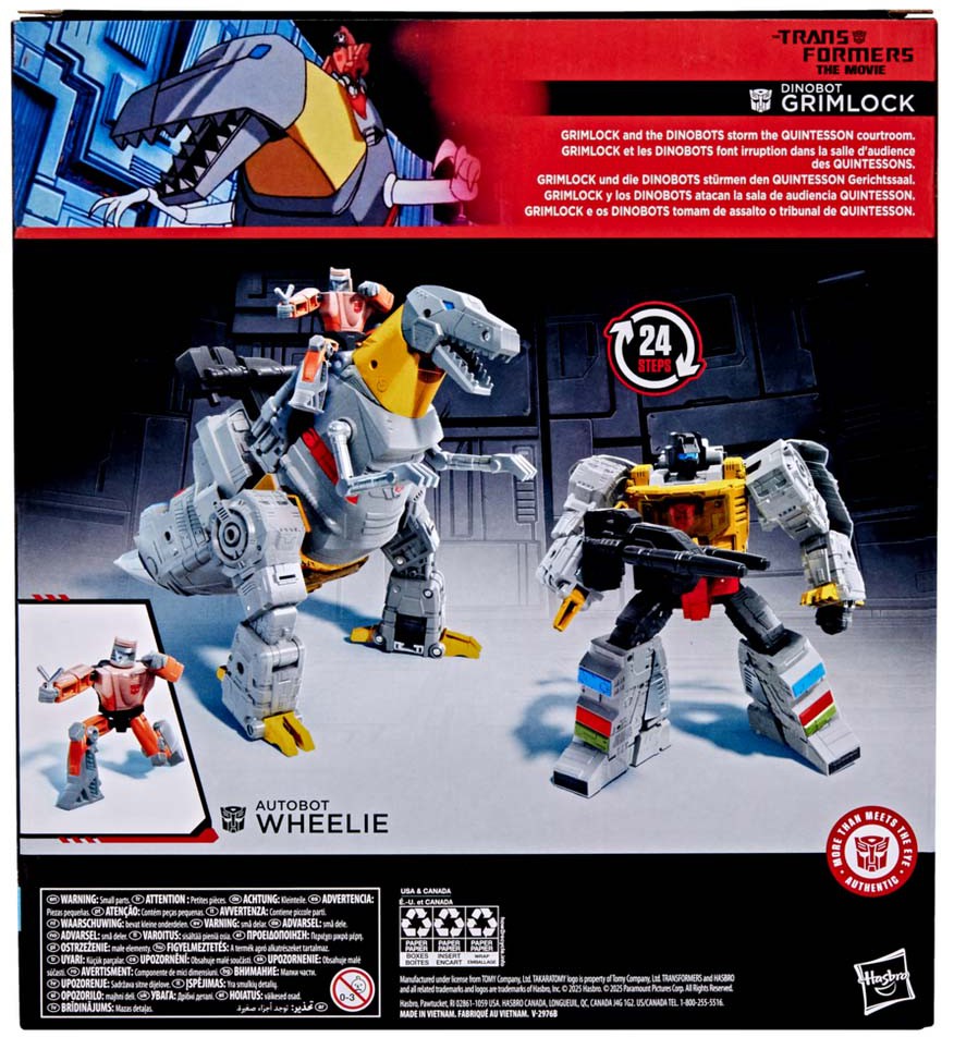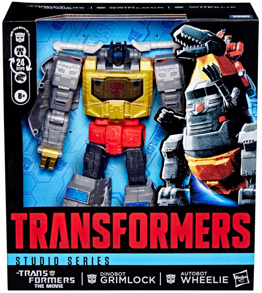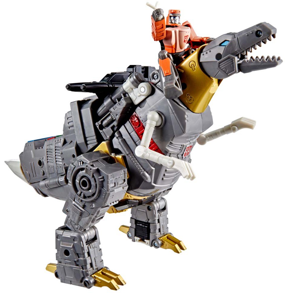 Inkluderer en ikke-konverterende Autobot Wheelie-figur, der kan sidde på Grimlock i begge tilstande.