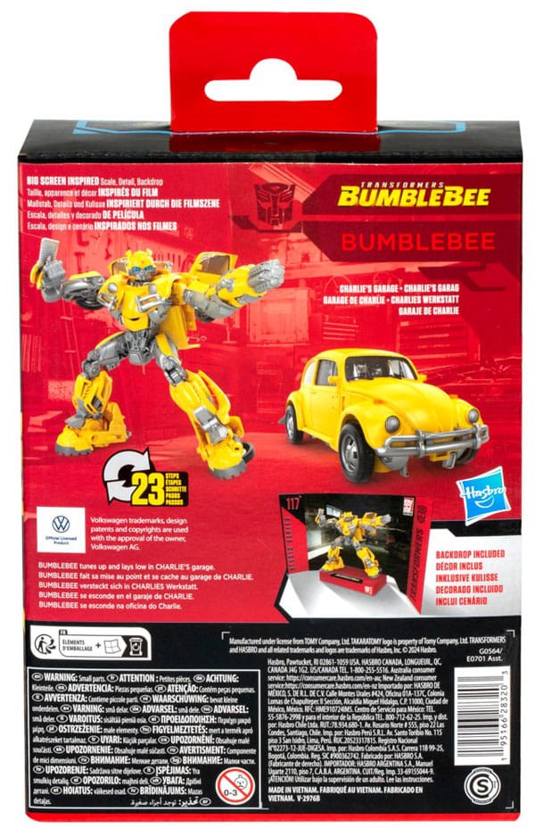 Bring the epic action of the Transformers movies from the big screen into your collection with the Transformers Studio Series Deluxe Class Bumblebee action figure, inspired by Transformers: Bumblebee! Transformers Studio Series toys are collectible action figures that feature movie-inspired details and accessories. Convert the Studio Series Transformers action figure from robot to Volkswagen Beetle car mode in 23 steps and pose the Bumblebee toy in the included Charlie's Garage removable backdrop scene. Look for more Transformers Studio Series collectible figures to build a movie-inspired collection.