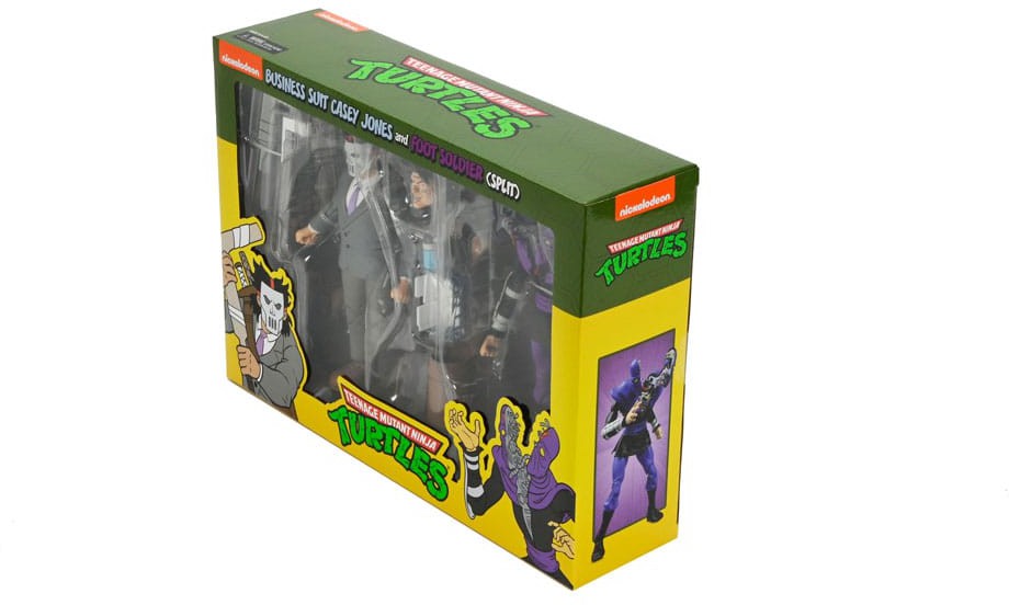 You asked and we listened... Casey Jones in his Octopus Inc. business suit disguise is here! This all-new Casey Jones sculpt is compatible with our original Casey Jones figure. He comes in an epic action figure 2-pack with the long-awaited split-in-half Foot Soldier. These action figures stand in 7-inch scale and are ready to join your collection today! Comes in collector-friendly window box packaging.