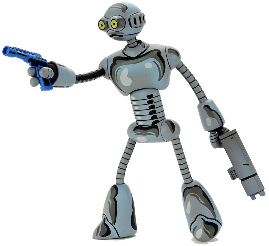 Based on the classic Teenage Mutant Ninja Turtles comic books from Mirage by Kevin Eastman and Peter Laird! This fugitive android was once the brilliant Professor Honeycutt from the planet D'Hoonib... until his mind was trapped inside his android creation in a freak accident. Now on the run from the government of his home world, this hero in a full shell (of metal) has become the best ally a Turtle could have. The Fugitoid action figure stands approximately 5.5" tall, and includes interchangeable hands, assorted weapons that can also be used by your NECA Turtles figures, and more! Comes in special comic-book tribute window box packaging.