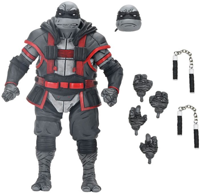 From the Teenage Mutant Ninja Turtles comic book series, The Last Ronin - The Lost Years! The tale of the Last Ronin's first mission continues as new secrets from the Turtles' past are revealed. After Raphael has fallen, the remaining Turtles regroup and form the Nightwatchers along with April and Casey. Based on issue #3, this Michelangelo figure stands in 7-inch scale and features a stylized paint job for a comic-authentic look. Accessories include two heads, extra hands, and nunchucks! Comes in collector-friendly packaging with original illustrations by The Last Ronin artist Ben Bishop.