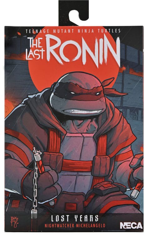 Fra Teenage Mutant Ninja Turtles-tegneserien The Last Ronin - The Lost Years! Historien om Last Ronins første mission fortsætter, mens nye hemmeligheder fra Turtles' fortid afsløres. Efter Raphaels fald samles de resterende skildpadder og danner Nightwatchers med April og Casey. Michelangelo-figuren har en stiliseret bemaling, der giver et autentisk tegneserielook. Tilbehøret omfatter to hoveder, ekstra hænder og nunchakus! Leveres i samlervenlig emballage med originale illustrationer af The Last Ronin-kunstneren Ben Bishop.
