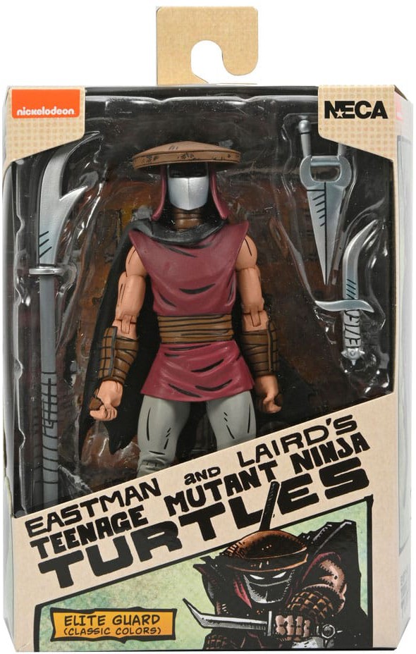 Based on the original Eastman & Laird Teenage Mutant Ninja Turtles comic books from Mirage Studios! The deadliest of the Foot ninjas, the Elite Guard are honor-bound to Shredder and personally trained by him. This Elite Foot Ninja action figure stands approximately 7" tall and features a classic color paint deco. Accessories include katar, naginata, jambiya, interchangeable hands and removable cape! Comes in special comic-book themed window box packaging illustrated by Kevin Eastman.