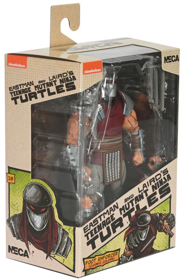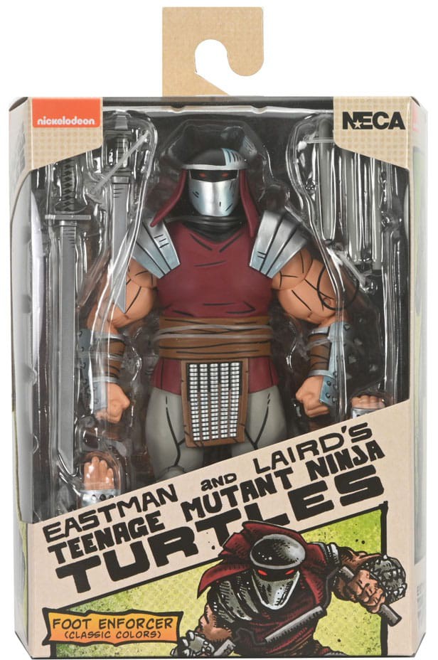 Joining the Foot Clan for the first time in their classic color outfits! Based on the original Eastman & Laird Teenage Mutant Ninja Turtles comic books from Mirage Studios, this big and brawling brute is ready to carry out Shredder's most lethal orders. Mysterious and menacing, Enforcers are the most skilled of the Foot Clan's ninjas. This well-armed warrior stands approximately 7-inch tall and features a classic color paint deco. Accessories include ninja weapons and interchangeable hands! Comes in special comic-book themed window box packaging featuring all new art by Kevin Eastman.
