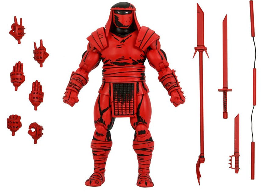 This Foot Enforcer action figure stands approximately 7" tall and features an exciting new red and black colorway. It includes a three-section staff, ninjato, butterfly sword, naginata and four sets of interchangeable hands. This NECA collectible comes in special comic-book themed window box packaging illustrated by Kevin Eastman.