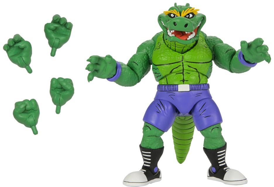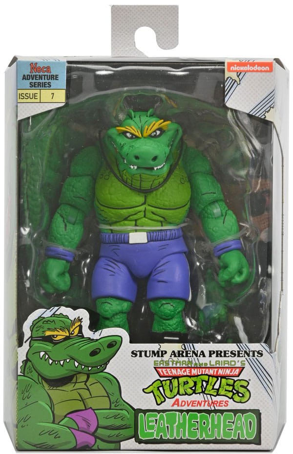 A first-time figure straight from the pages of Eastman and Laird's Teenage Mutant Ninja Turtles Adventures comic book series from Archie Comics! This 7-inch scale Stump Wrestling Leatherhead action figure by NECA features a hinged jaw to chomp the champ and a bendy wire tail to bash turtle brains! It also includes extra hands and comes in reliable window box packaging with original box art by Ken Mitchroney.