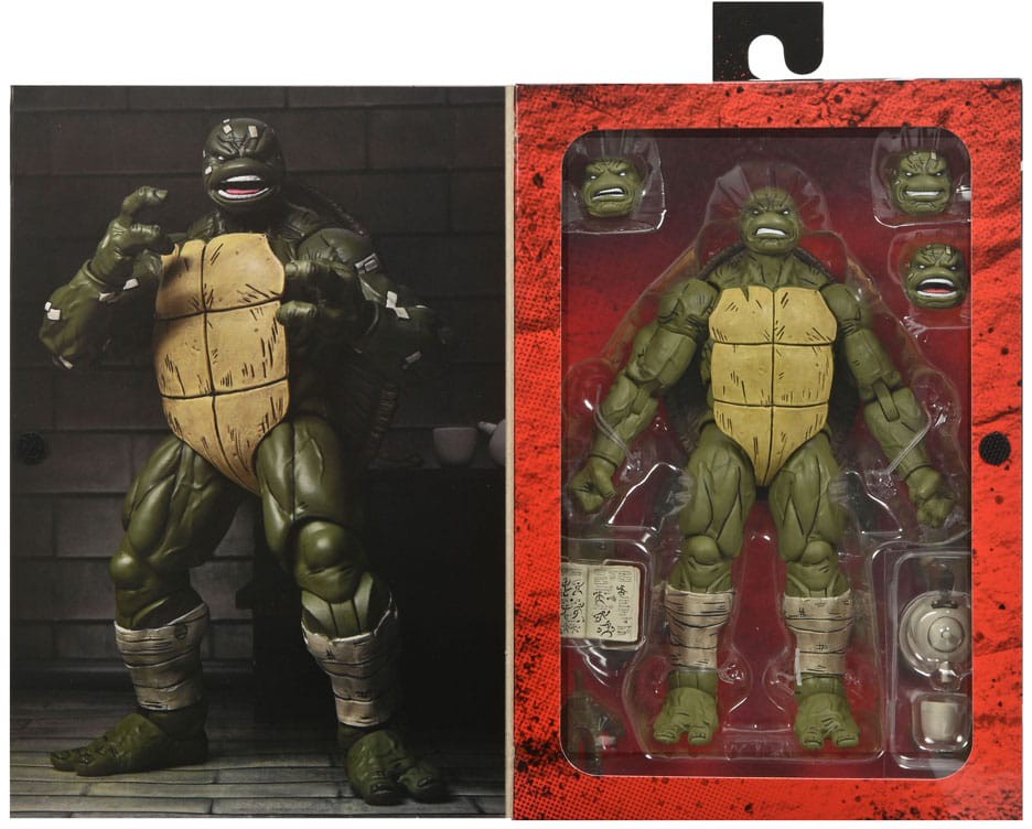 From the Teenage Mutant Ninja Turtles comic book series, The Last Ronin! In a future NYC far different than the one we know today, a lone surviving Turtle goes on a seemingly hopeless mission to obtain justice for his fallen family and friends. Standing in 7-inch scale, this battle-damaged Last Ronin action figure features an all-new sculpture and multiple customizing display options. It includes interchangeable arms, alternate heads, extra hands, all-new Splinter's diary, tea pot, and cup. Comes in collector-friendly window box packaging with opening flap featuring a custom illustration by The Last Ronin artist Ben Bishop.