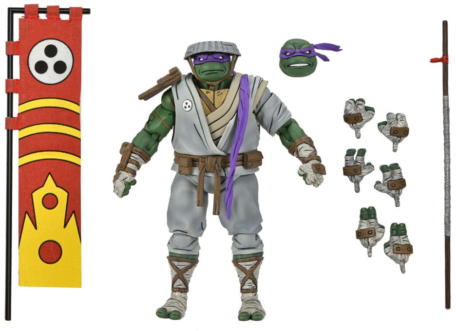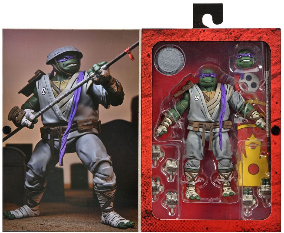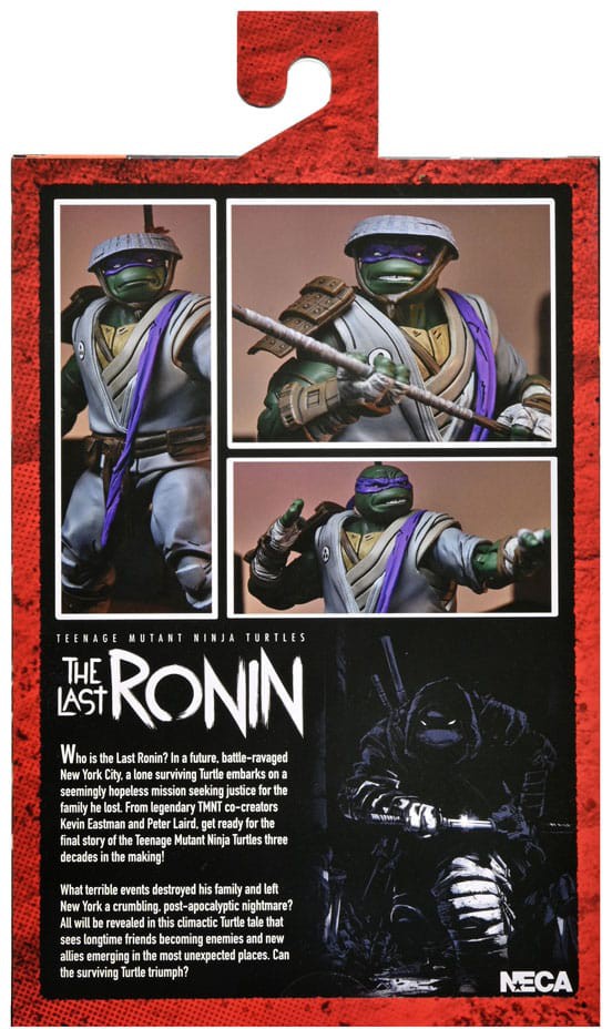 From the Teenage Mutant Ninja Turtles comic book series, The Last Ronin! In a future NYC far different than the one we know today, a lone surviving Turtle goes on a seemingly hopeless mission to obtain justice for his fallen family and friends. Based on issue #4 of the comic, this Donatello figure stands in 7-inch scale with over 30 points of articulation and includes extra hands, head, Hamato Clan shashimono, and even a removable hat! Comes in collector-friendly window box packaging with opening flap featuring a custom illustration by The Last Ronin artist Ben Bishop.