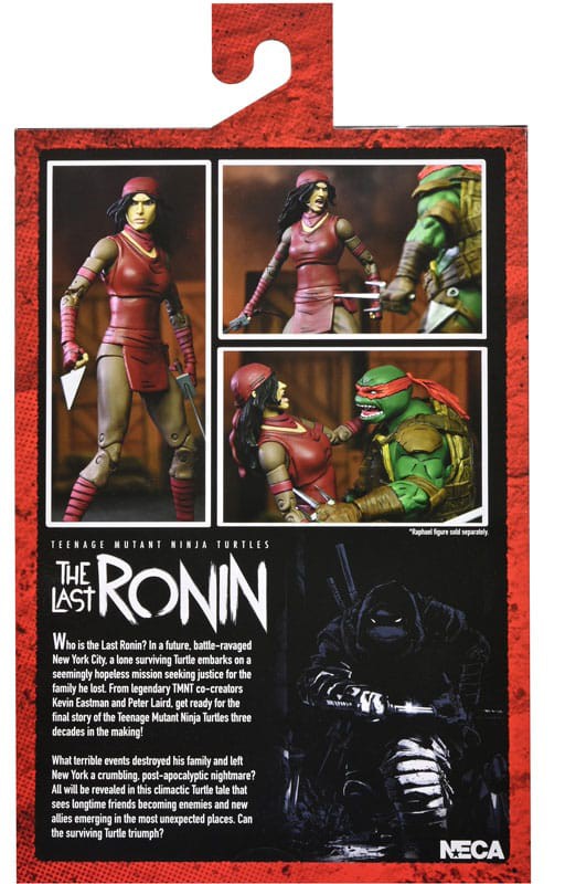 From the Teenage Mutant Ninja Turtles comic book series, The Last Ronin! In a future NYC far different than the one we know today; a lone surviving Turtle goes on a seemingly hopeless mission to obtain justice for his fallen family and friends. A Foot Clan leader, Karai is both a fearsome foe and uneasy ally to Turtle family. After a broken truce, Karai engages in a battle that could change the fate of the Turtles forever. As depicted in The Last Ronin, this Ultimate 7" scale figure features over 20 points of articulation and includes two interchangeable head sculpts, interchangeable hands, sword and sheath, and throwing knife. Comes in collector-friendly window box packaging with opening flap featuring a new custom illustration by The Last Ronin artist Ben Bishop.