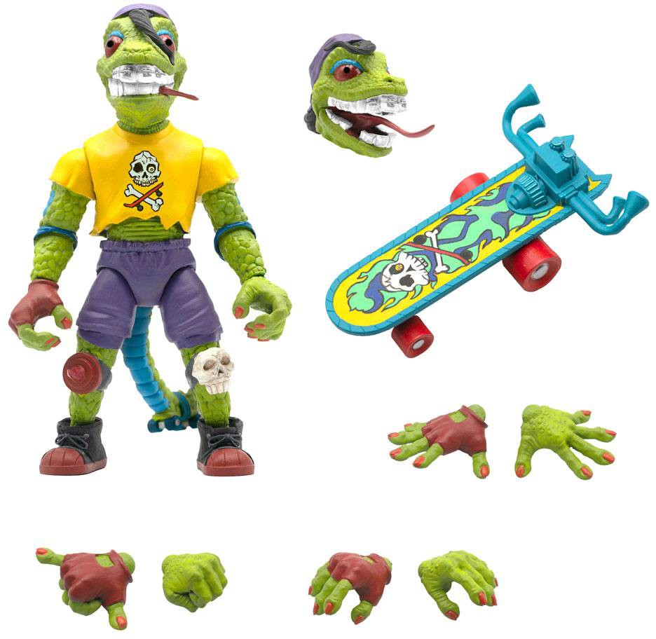 Mondo comes dressed in his 80s flair, with a huge collection of accessories including alternate head, alternate hands, and a turbo-charged sewer skateboard.