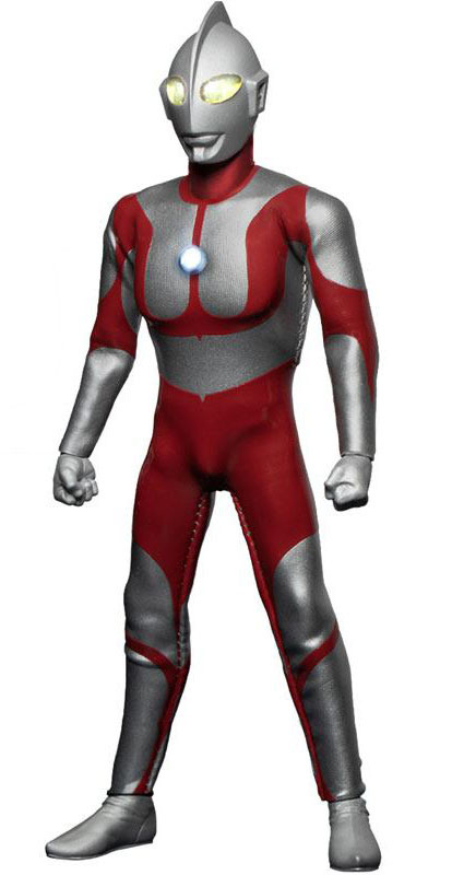Ultraman is outfitted in a combat suit powered by his Ultraman Factor, and features a light-up Color Timer on his chest. He comes with two light-up head portraits including a Fluoroscope Ray portrait, known for de-cloaking and destroying!