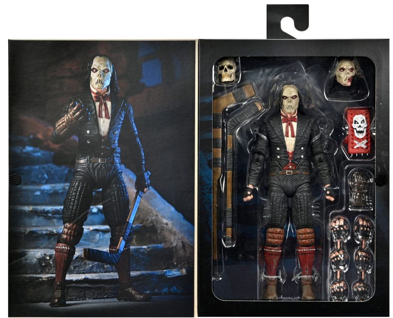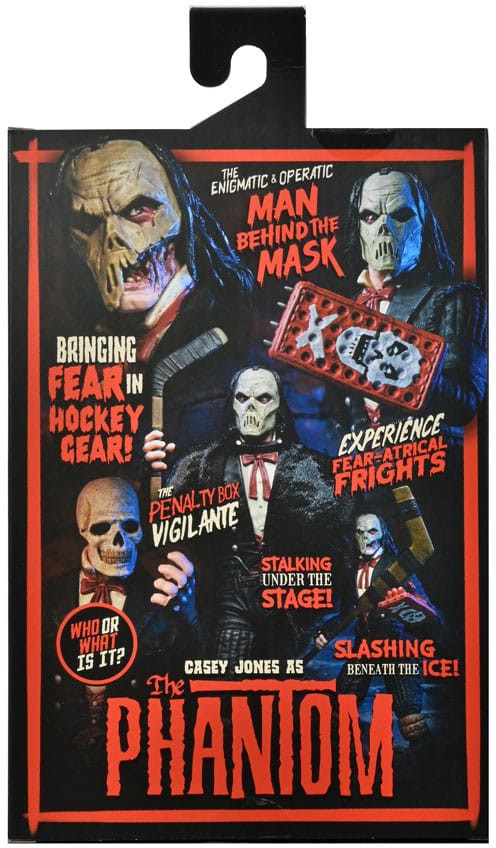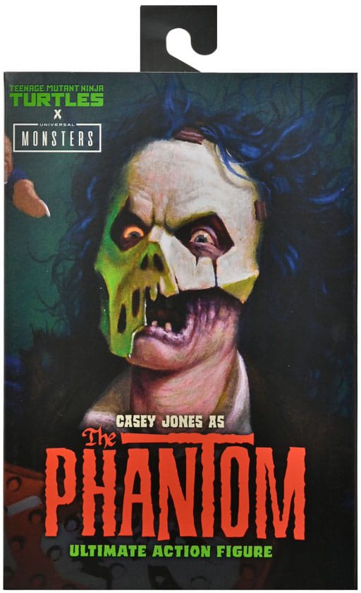 What terror lurks beneath the ice? Experience Fear-atrical frights with NECA's new Universal Monsters x Teenage Mutant Ninja Turtles action figure starring Casey Jones! This continuing line pays tribute to the world's most famous turtles and Universal's icons of horror. Casey Jones as The Phantom reimagines the vigilante as the enigmatic and operatic man behind the mask who haunts the hockey rink! This 7" scale figure includes removable soft goods cloak, skull, hockey sticks, gloves, and interchangeable heads and hands. Comes in collector-friendly window box packaging with opening flap featuring an all-new illustration by Daniel Horne.