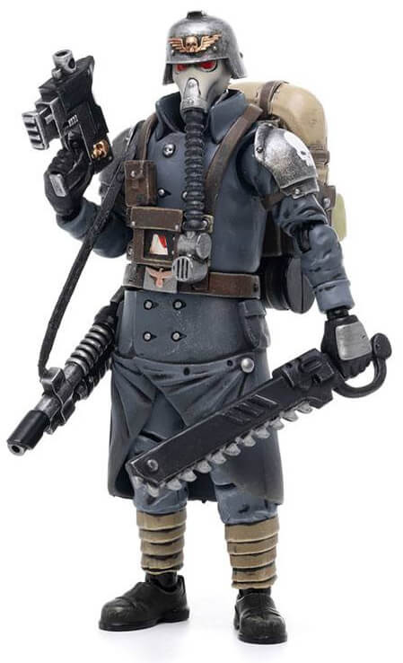 Joy Toy brings the Death Korps of Krieg Veteran Squad from Warhammer 40k to life with this new series of 1/18 scale figures. Each figure includes interchangeable hands and weapon accessories and stands between 4" and 6" tall.