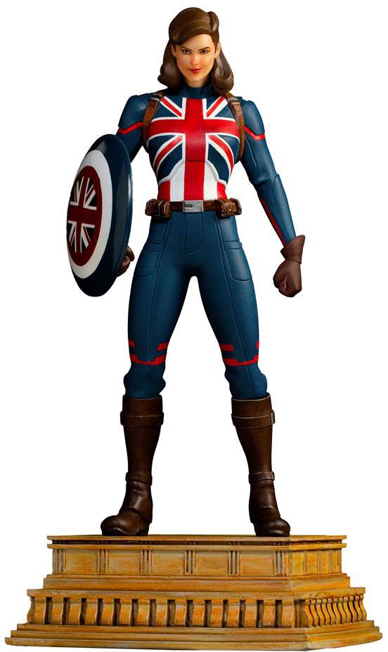 Over a base inspired by the Brandenburg Gate, the British heroine watches a fleet of vehicles belonging to the subversive paramilitary terrorist organization, HYDRA. Wearing her uniform representing the UK, she prepares to launch her vibranium shield against enemy forces on her first mission to retrieve the cosmic artifact Tesseract and capture the scientist, Arnim Zola. As in the first episode of the anthological animated series "What If...?, created for Disney+ streaming by Ashley C. Bradley, Iron Studios presents the statue "Captain Carter - What If...? - Art Scale 1/10" featuring the first Avenger of an alternate timeline from the Marvel multiverse.