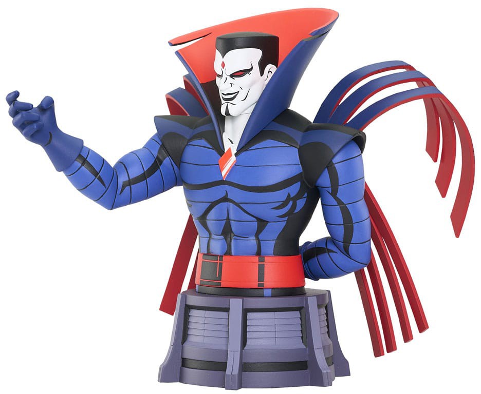 X-Men beware! Mister Sinister has leapt off the screen of the classic X-Men cartoon and landed in the middle of DST's animation-based line of busts! Measuring approximately 5.5 inches tall atop a pedestal base, this mini-bust captures Sinister's TV appearance, and is limited to only 2,000 pieces. It comes packaged in a full-color box with a numbered certificate of authenticity. Designed by Barry Bradfield, sculpted by Michelle Riley!