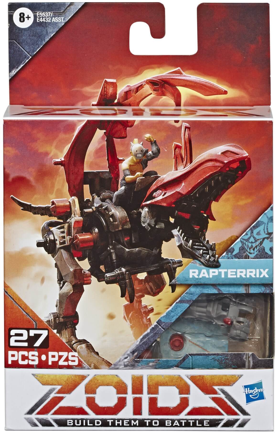 Zoids figures are building toys that battle. This Mega Battlers pack comes with 27 pieces to build the Velociraptor-type Rapterrix figure. Once built, wind it up to activate its animatronic motion. As the figure moves, reposition it into a dynamic battle move called a Dark Blast and unleash its Velocistrike move!