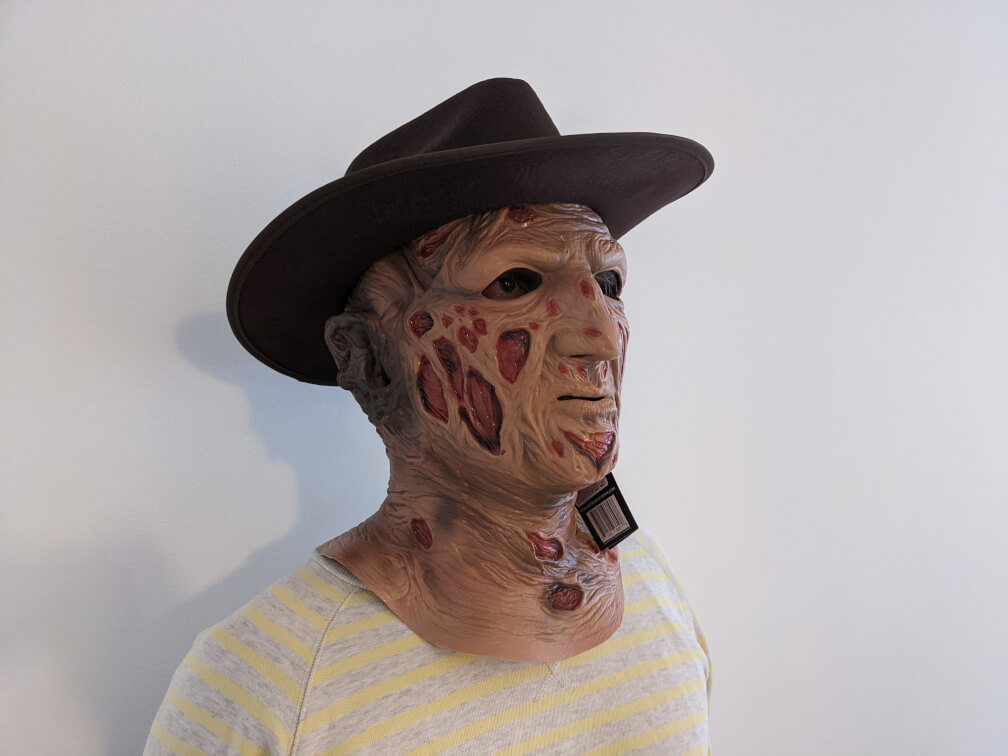 In addition to this incredible mask, this version of the mask comes with a beautiful replica of the Fedora Hat worn by Freddy Krueger in A Nightmare on Elm Street.