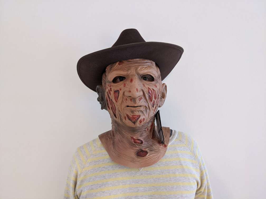 Based on hundreds of screen and behind the scenes photographs, this is the ultimate Freddy Krueger Mask from Wes Craven's original classic, A Nightmare on Elm Street. Every detail of Freddy, as played by the incredible Robert Englund is present in this mask.